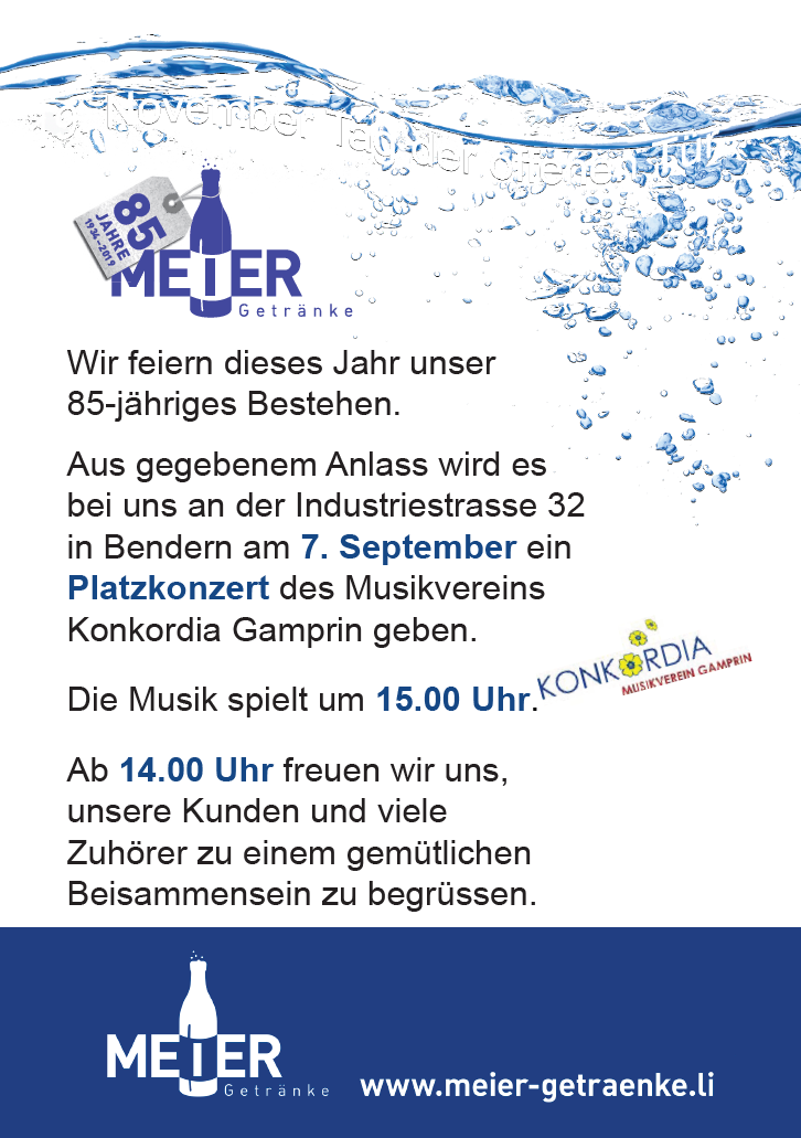 - Und um 15:00 Uhr bei Getränke Meier anlässlich ihres 85-jährigen Firmenjubiläums, zu dem wir herzlich gratulieren.